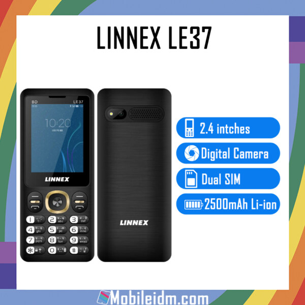 Linnex LE37 This Feature Phone is Price in Bangladesh 1,099 Tk. This device has a 2.4 inches Display and is Chipset powered by MediaTek. This phone has a Digital camera without flash and a microSD card slot for External storage. This mobile is available in two different colors – Black & Gold. For those who are looking for a feature phone that offers all the basic features, such as calling, texting, and internet browsing, as well as 2500mAh battery life, then Linnex Mobile LE37 is a good phone.